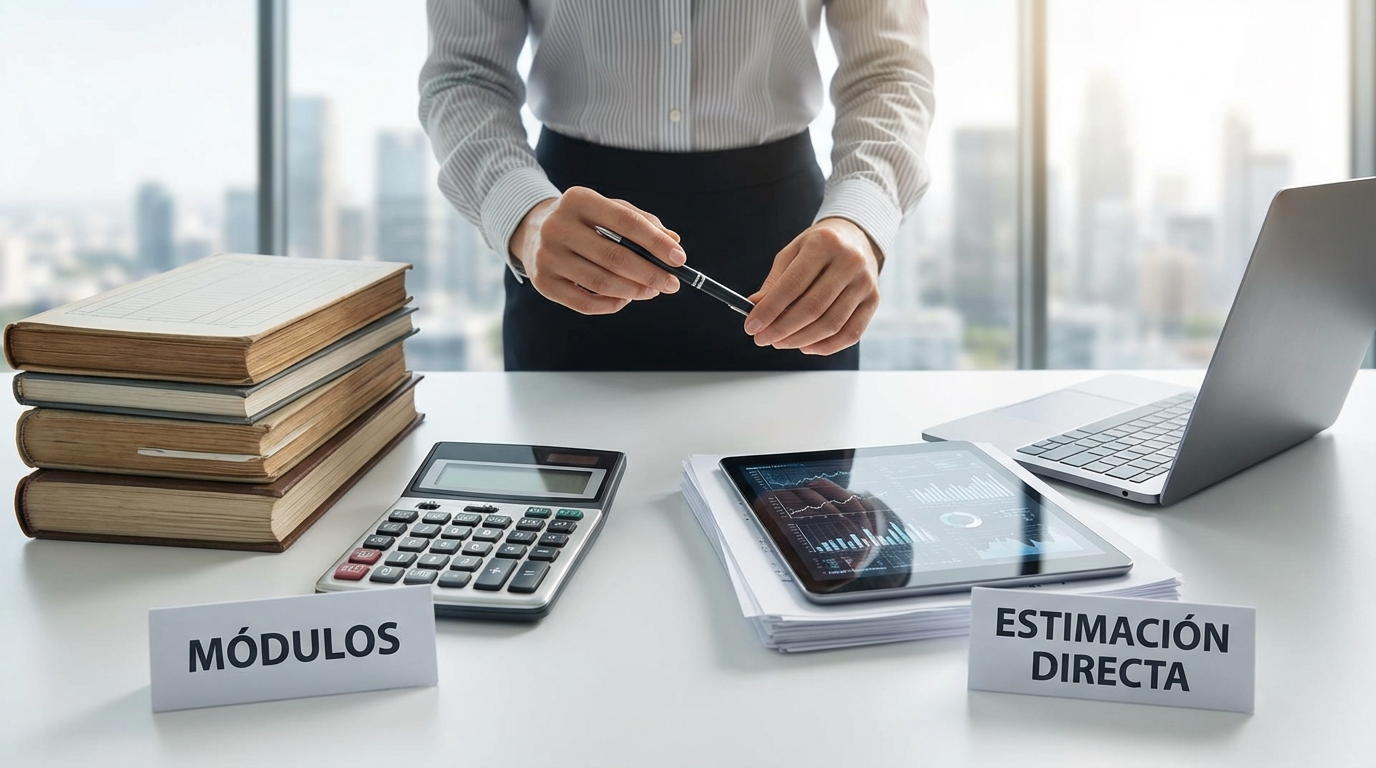 Estimación directa conviene cuando: los gastos son elevados (alquiler de local, empleados, vehículos), los ingresos son variables o irregulares, se está en fase de inicio de actividad con pérdidas iniciales, o se ha superado los límites de módulos.